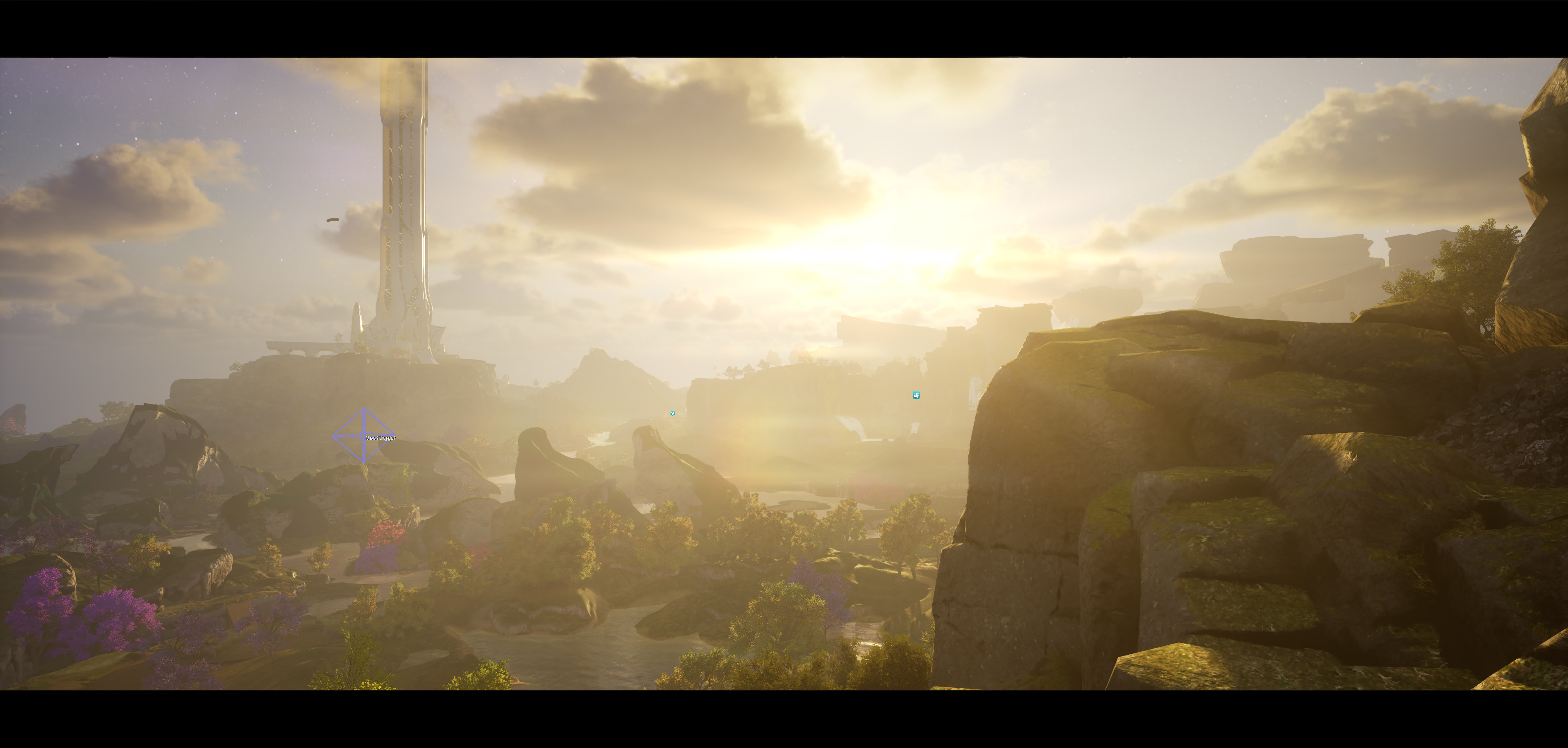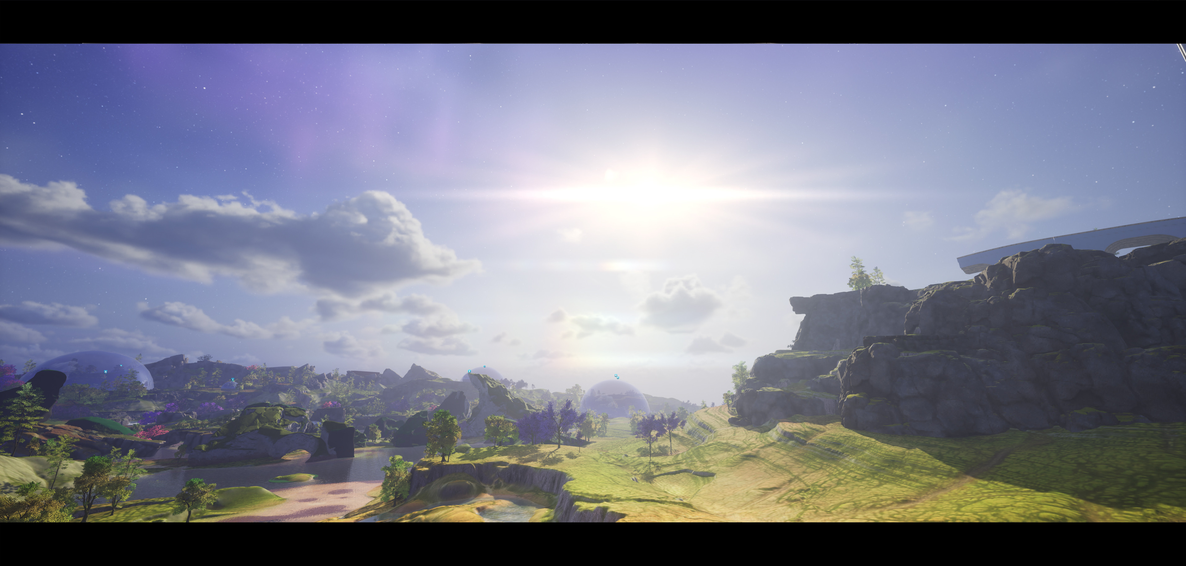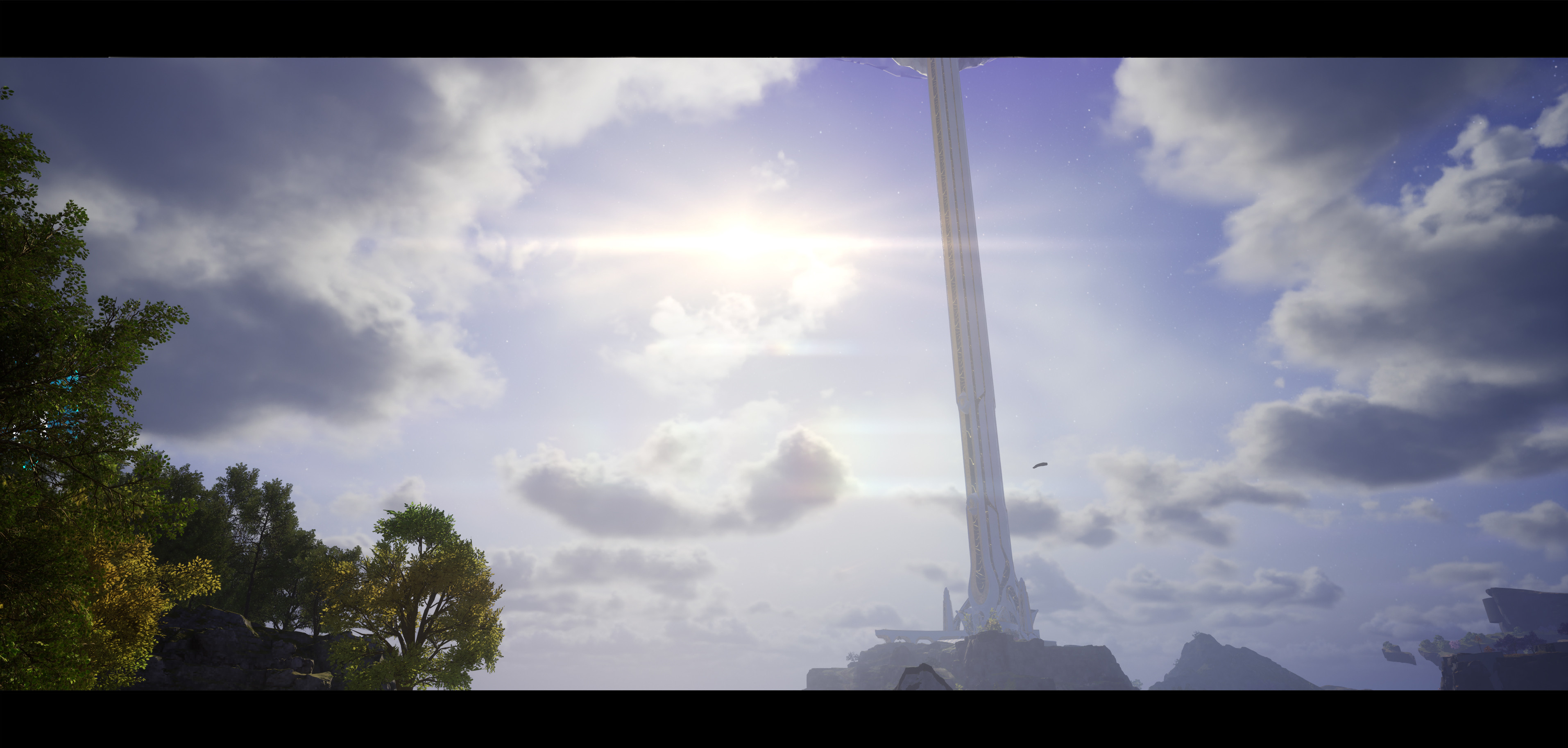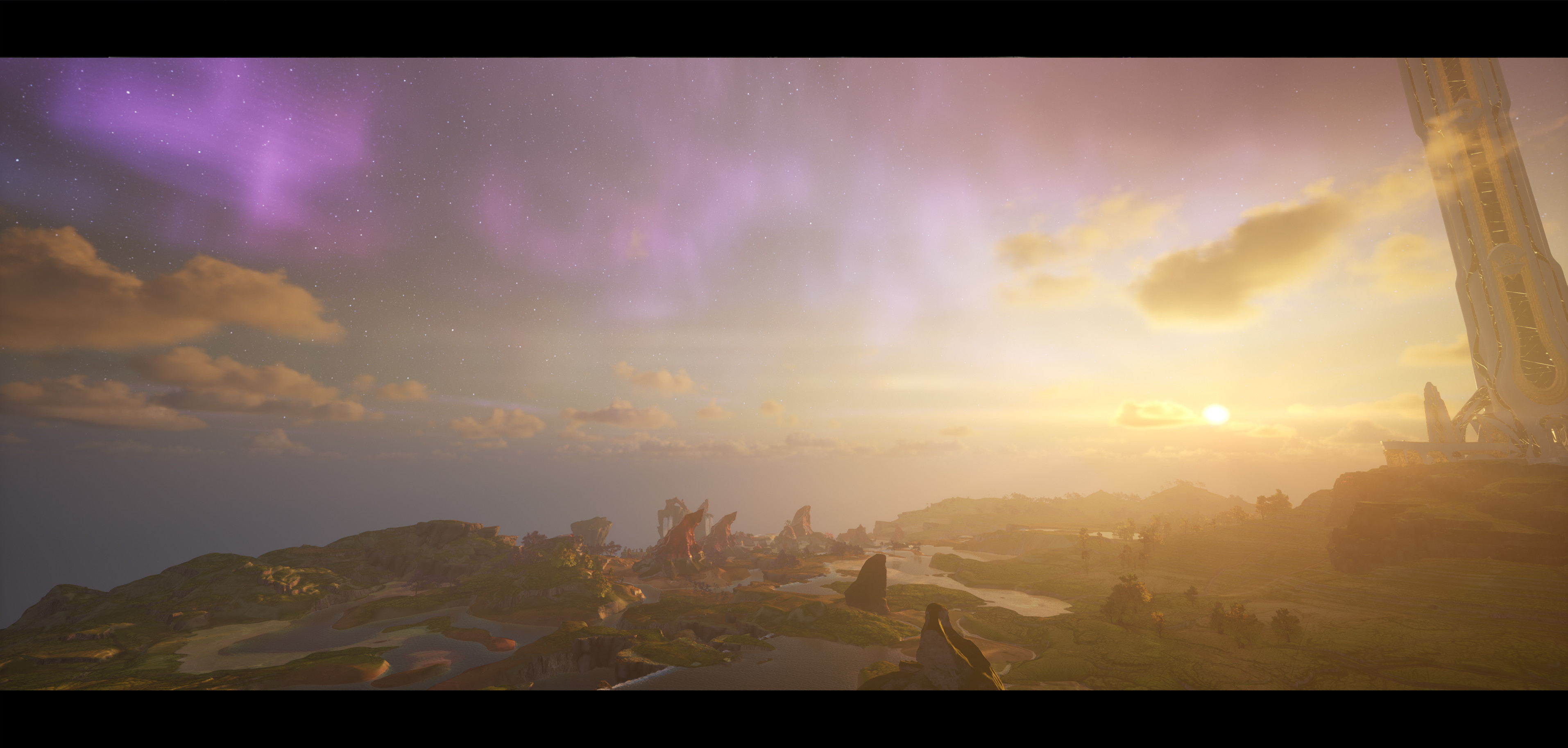 Full day/night cycle with volumetric clouds, environmental and sky VFX including ground fog, skybox integration, and color grading.