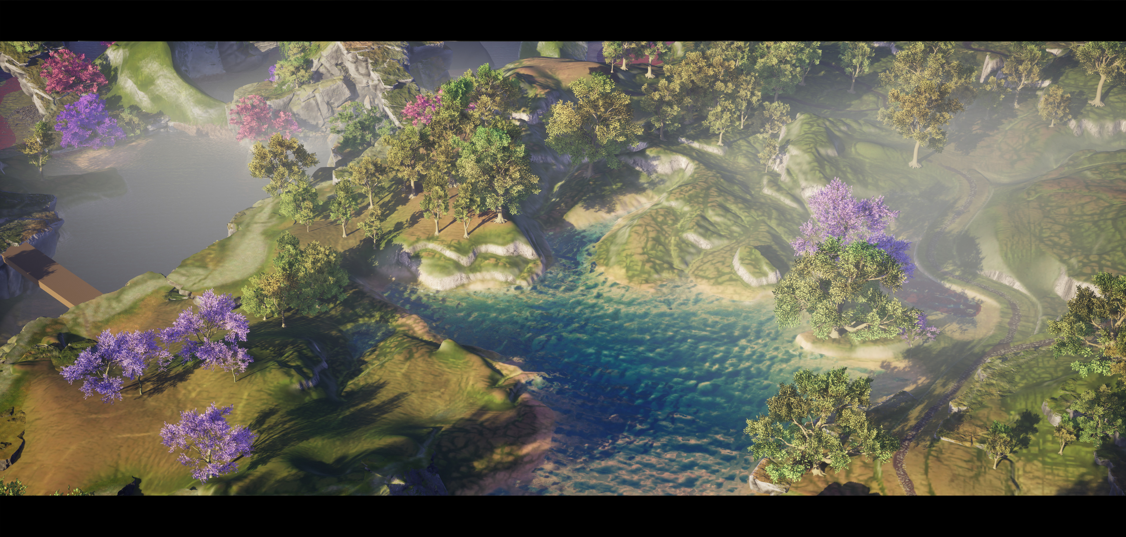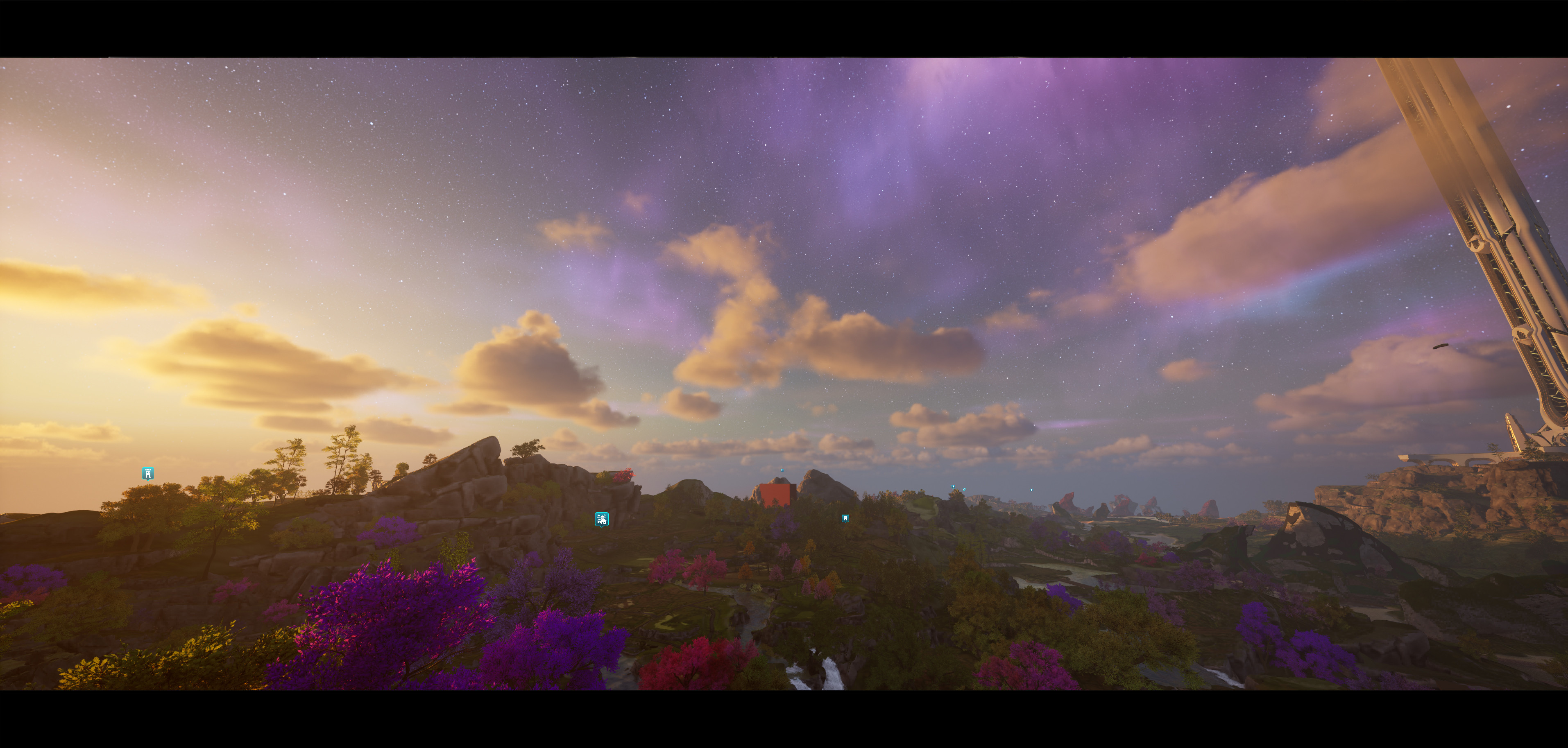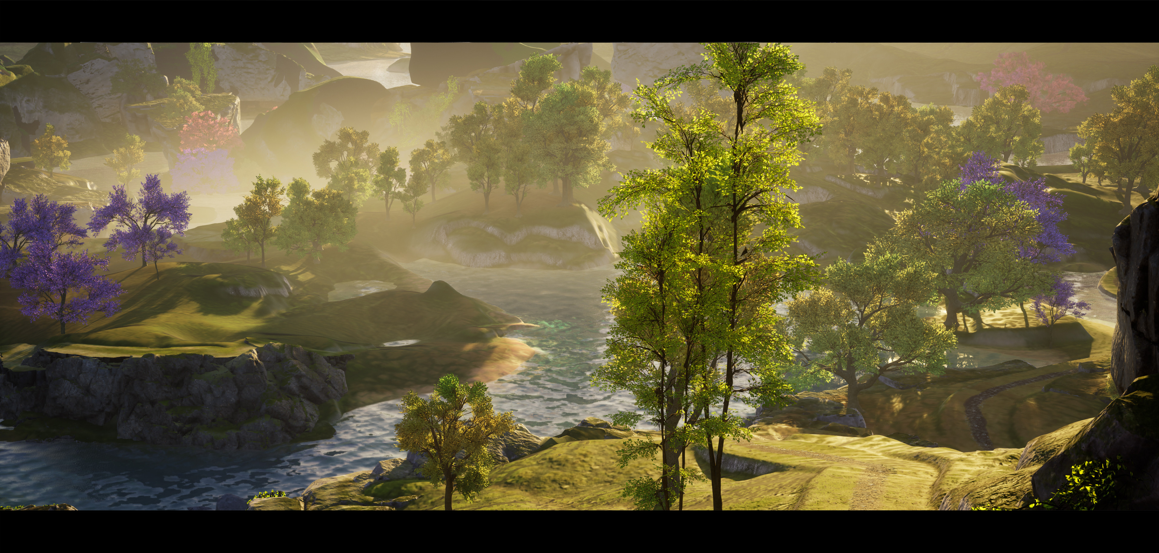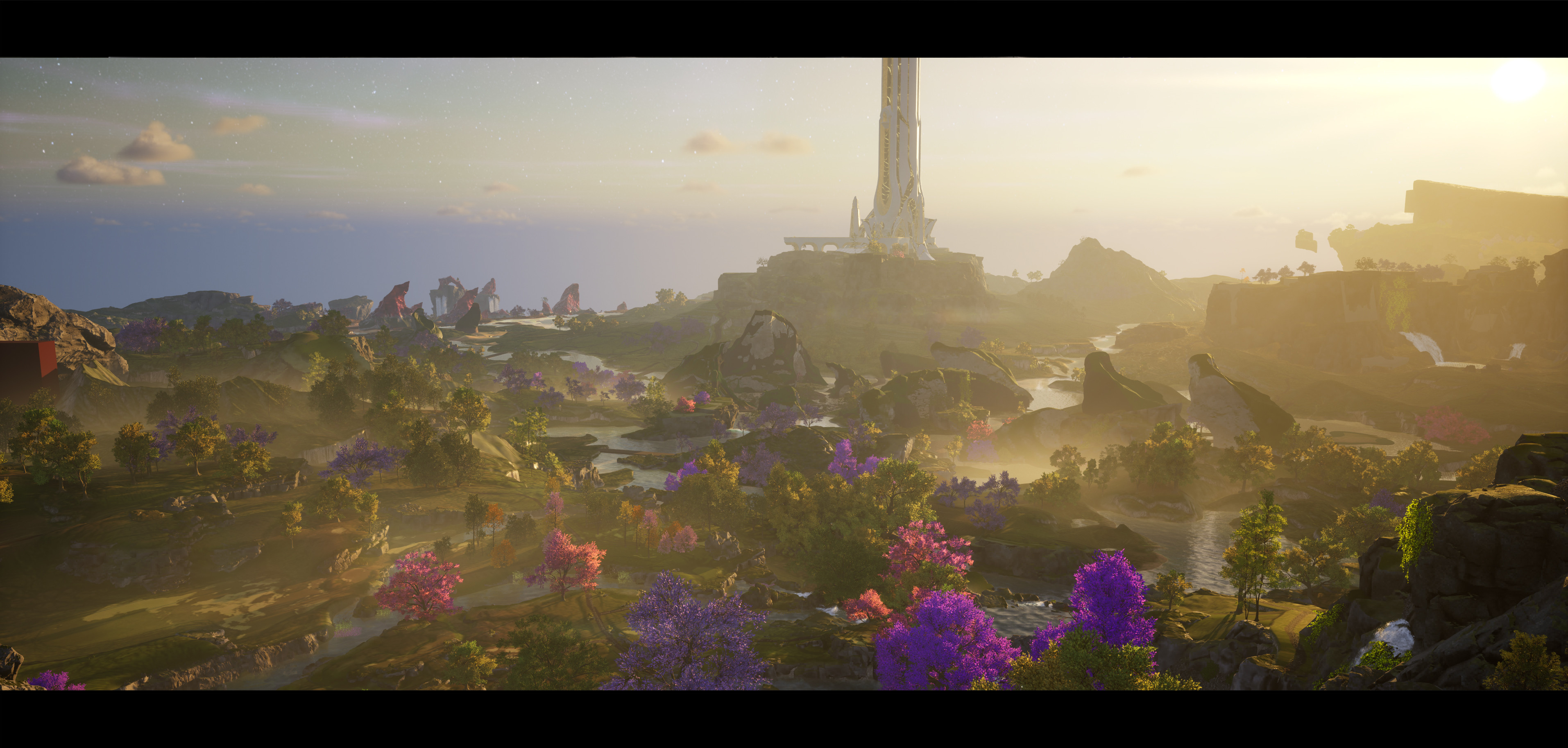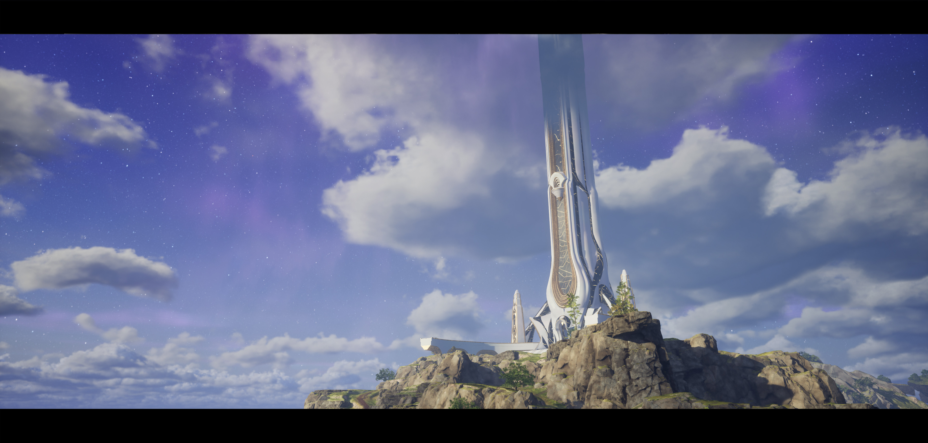 Full day/night cycle with volumetric clouds, environmental and sky VFX including ground fog, skybox integration, and color grading.